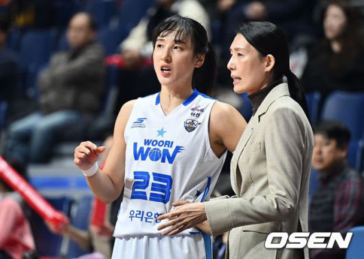 아산 우리은행 김단비가 전주원 코치와 얘기하고 있다. 2026.01.21 / foto0307@osen.co.kr