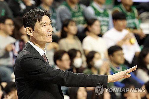 (원주=연합뉴스) 양지웅 기자 = 21일 강원 원주DB프로미아레나에서 열린 2025-2026 프로농구 원주 DB와 부산 KCC의 경기. DB 김주성 감독이 작전을 지시하고 있다. 2026.1.21