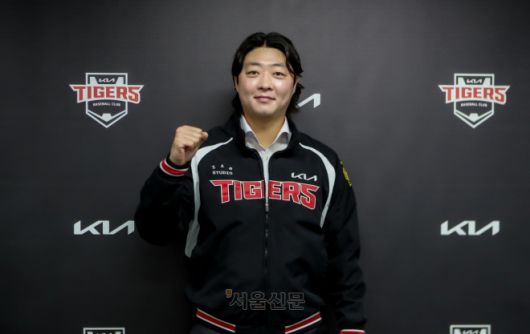 자유계약(FA) 시장에 도전한 김범수가 21일 광주 기아챔피언스필드에서 프로야구 KIA 타이거즈와 FA 계약을 맺은 뒤 주먹을 쥐어 보이고 있다. 2026.1.21 KIA 타이거즈 제공 |