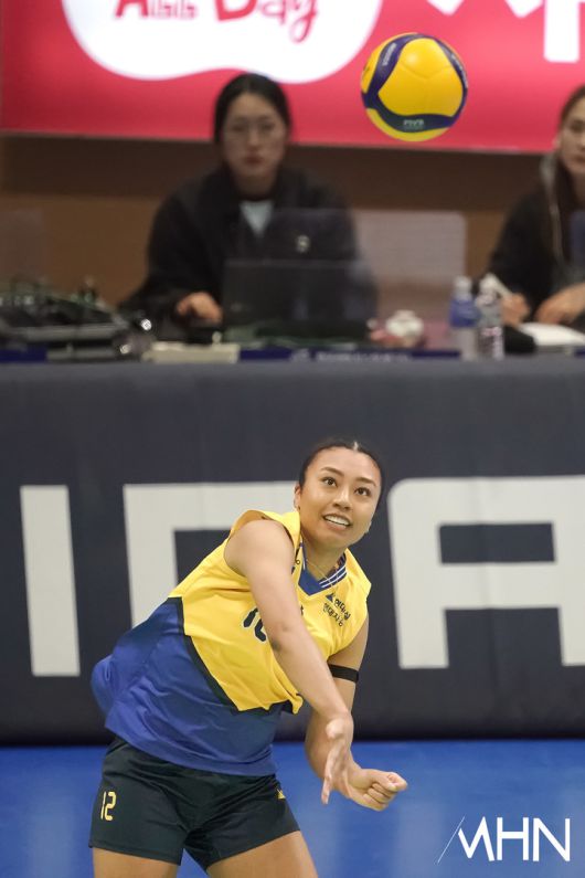 (MHN 수원, 박태성 기자) 21일 수원실내체육관에서 '2025-2026 V-리그 여자부' 현대건설과 페퍼저축은행 경기가 열렸다. 현대건설이 2위(14승9패)로 6위(8승15패)인 페퍼저축은행을 상대로 먼저 1세트를 가져가며 경기를 펼치고 있다. 자스티스가 경기를 펼치고 있다. <저작권자 Copyright ⓒ MHN / 엠에이치앤 무단전재 및 재배포 금지>