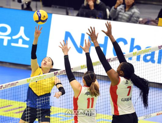 현대건설 이예림(왼쪽)이 21일 수원체육관에서 열린 2025-2026 V리그 여자부 페퍼저축은행과의 경기에서 페인트 공격을 하고 있다, 2026. 1. 21.수원 | 박진업 기자 upandup@sportsseoul.com [기사제보 news@sportsseoul.com] Copyright ⓒ 스포츠서울&sportsseoul.com