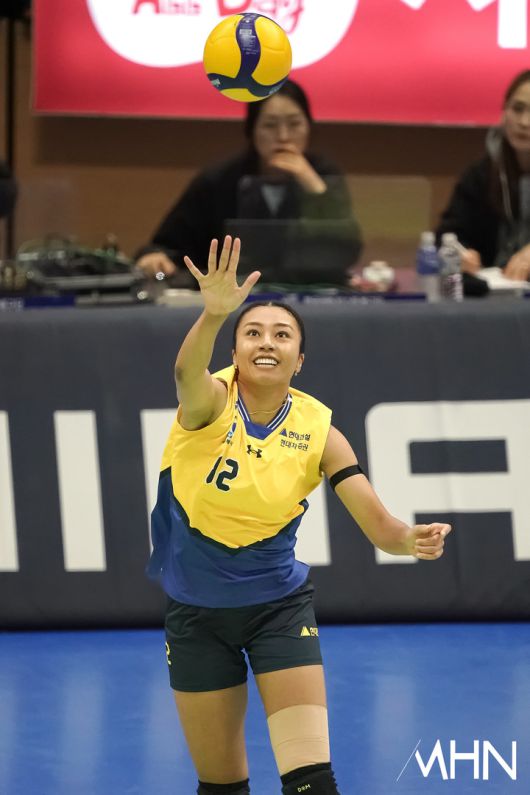 (MHN 수원, 박태성 기자) 21일 수원실내체육관에서 '2025-2026 V-리그 여자부' 현대건설과 페퍼저축은행 경기가 열렸다. 2위(14승9패) 현대건설과 6위(8승15패) 페퍼저축은행이 1-1로 경기를 펼치고 있다. 현대건설 자스티스가 경기를 펼치고 있다. <저작권자 Copyright ⓒ MHN / 엠에이치앤 무단전재 및 재배포 금지>