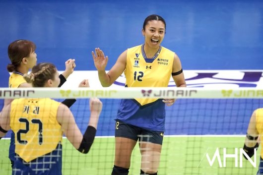 (MHN 수원, 박태성 기자) 21일 수원실내체육관에서 '2025-2026 V-리그 여자부' 현대건설과 페퍼저축은행 경기가 열렸다. 2위(14승9패) 현대건설과 6위(8승15패) 페퍼저축은행이 1-1로 경기를 펼치고 있다. 현대건설 자스티스가 경기를 펼치고 있다. <저작권자 Copyright ⓒ MHN / 엠에이치앤 무단전재 및 재배포 금지>