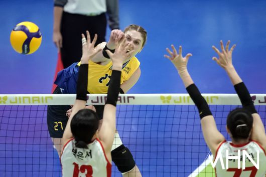 현대건설 카리가 경기를 펼치고 있다.