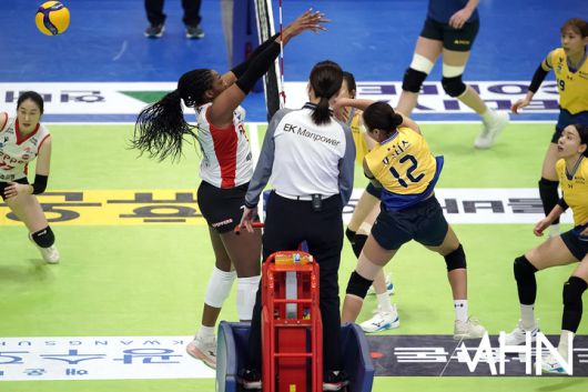(MHN 수원, 박태성 기자) 21일 수원실내체육관에서 '2025-2026 V-리그 여자부' 현대건설과 페퍼저축은행 경기가 열렸다.