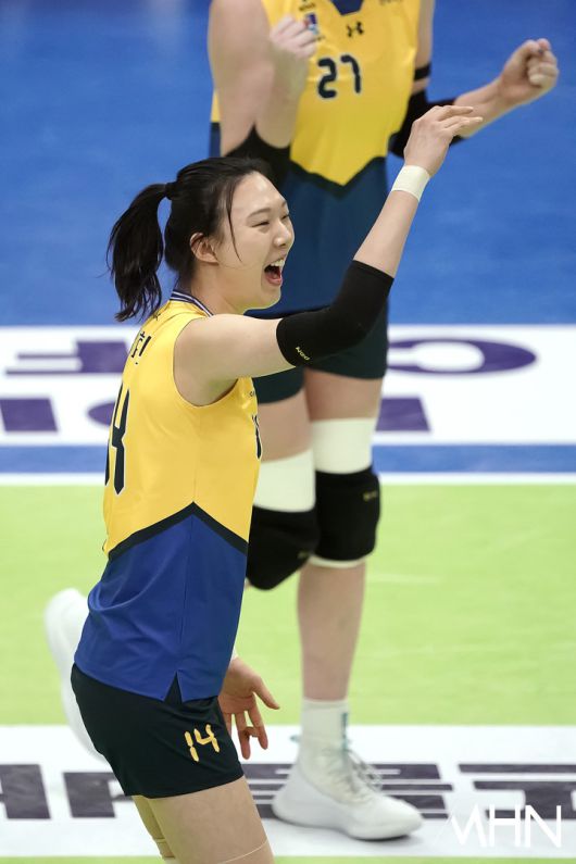 (MHN 수원, 박태성 기자) 21일 수원실내체육관에서 '2025-2026 V-리그 여자부' 현대건설과 페퍼저축은행 경기가 열렸다. 2위(14승9패) 현대건설과 6위(8승15패) 페퍼저축은행이 1-1로 경기를 펼치고 있다. 현대건설 양효진이 경기를 펼치고 있다. <저작권자 Copyright ⓒ MHN / 엠에이치앤 무단전재 및 재배포 금지>