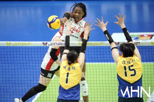 (MHN 수원, 박태성 기자) 21일 수원실내체육관에서 '2025-2026 V-리그 여자부' 현대건설과 페퍼저축은행 경기가 열렸다.