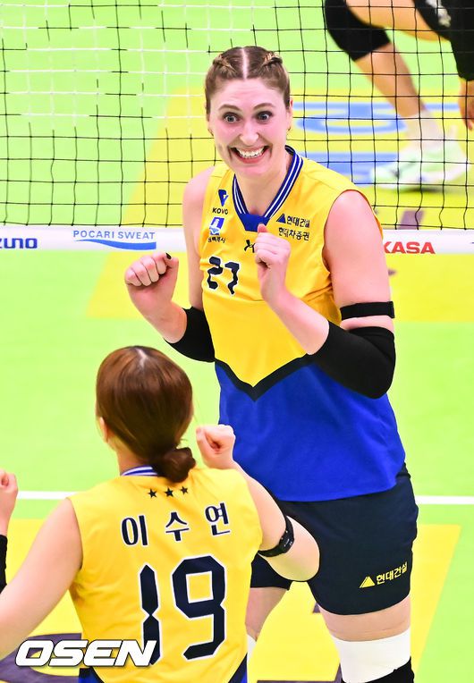 1세트 승리를 거둔 현대건설 조이가 기뻐하고 있다. 2026.01.21 / soul1014@osen.co.kr