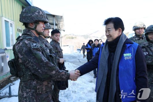 21일 정동영 통일부 장관이 강원 고성 'DMZ 평화의 길'을 방문해 최전방 22사단 장병들을 격려하고 있다. (통일부 제공) |