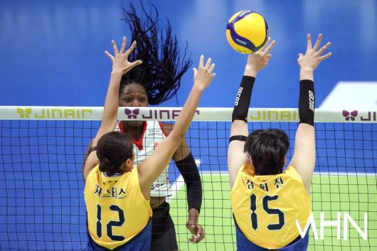 (MHN 수원, 박태성 기자) 21일 수원실내체육관에서 '2025-2026 V-리그 여자부' 현대건설과 페퍼저축은행 경기가 열렸다. 2위(14승9패) 현대건설과 6위(8승15패) 페퍼저축은행이 1-2 경기를 펼치고 있다. 페퍼 조이가 경기를 펼치고 있다. <저작권자 Copyright ⓒ MHN / 엠에이치앤 무단전재 및 재배포 금지>