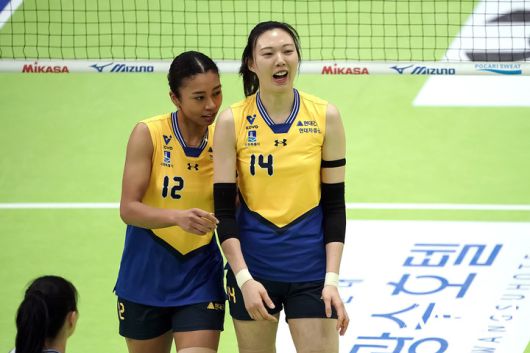 (MHN 수원, 박태성 기자) 21일 수원실내체육관에서 '2025-2026 V-리그 여자부' 현대건설과 페퍼저축은행 경기가 열렸다. 2위(14승9패) 현대건설과 6위(8승15패) 페퍼저축은행이 1-2 경기를 펼치고 있다. 현대건설 자스티스가 경기를 펼치고 있다. <저작권자 Copyright ⓒ MHN / 엠에이치앤 무단전재 및 재배포 금지>