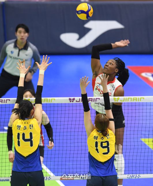 페퍼저축은행 조이(오른쪽)가 21일 수원체육관에서 열린 2025-2026 V리그 여자부 현대건설과의 경기에서 스파이크 공격을 하고 있다, 2026. 1. 21.수원 | 박진업 기자 upandup@sportsseoul.com [기사제보 news@sportsseoul.com] Copyright ⓒ 스포츠서울&sportsseoul.com