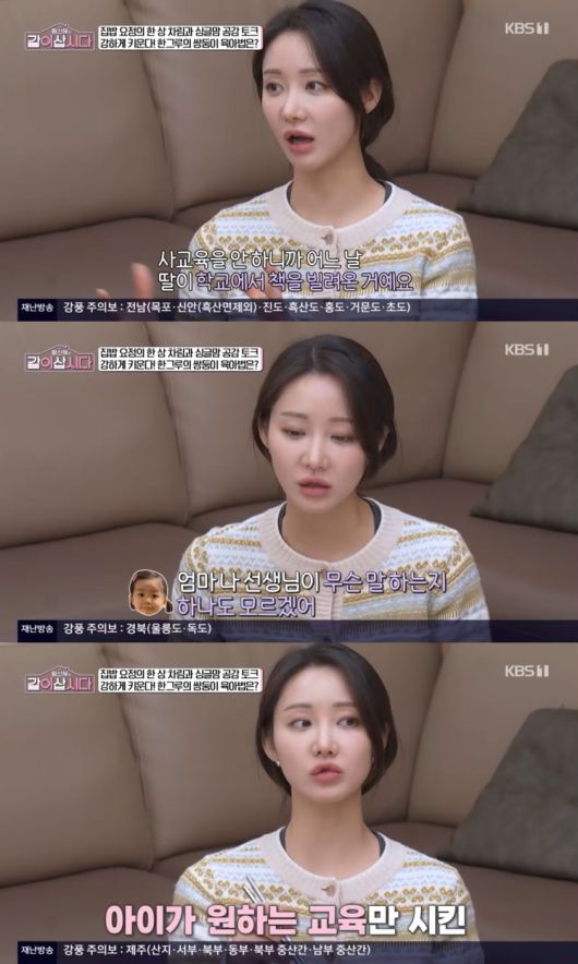 이어 "사교육을 안 시키니까 어느 날 딸이 학교에서 책을 빌려오더라. '수학 잘하는 방법' 이런 제목이었다. 그러더니 '수학 공부하고 싶다'더라. 그래서 그거 (학습지) 말고는 없다"며 딸의 학구열을 자랑했다.