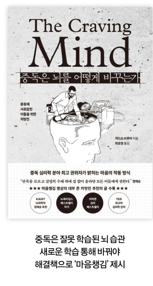 저드슨 브루어의 「중독은 뇌를 어떻게 바꾸는가」는 중독의 굴레에서 헤어나지 못하는 이들의 뇌와 마음을 들여다본다. "우린 왜 무언가에 중독되고, 나쁜 습관이라는 걸 알면서도 그 굴레에서 벗어나지 못할까." 신경과학자이자 중독 심리학자인 저자는 이 질문의 답을 '뇌'에서 찾는다. 갈망이 뇌에서 형성되고 강화돼 습관으로 자리 잡는 과정을 과학적으로 설명하고, 근본적 해법들을 제시한다.