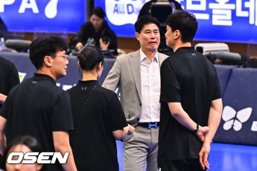 [OSEN=수원, 박준형 기자] 6위 페퍼저축은행이 2위 현대건설을 제압하고 전반기를 마무리했다. 페퍼저축은행은 21일 수원실내체육관에서 열린 진에어 2025~2026 V-리그 현대건설을 상대로 3-1(23-25, 25-15, 25-16, 25-19) 역전승을 거뒀다. 경기종료 후 현대건설 강성형 감독이 패배에 아쉬워하고 있다. 2026.01.21 / soul1014@osen.co.kr