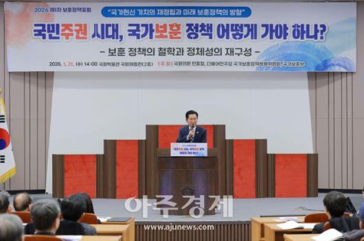 [사진=유대길 기자 dbeorlf123@ajunews.com] 정청래 더불어민주당 대표가 21일 오후 서울 여의도 국회 박물관에서 열린 국가보훈정책특별위원회 포럼에서 축사를 하고 있다. 2026.01.21 아주경제=유대길 기자 dbeorlf123@ajunews.com - Copyright ⓒ [아주경제 ajunews.com] 무단전재 배포금지 -