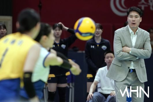 (MHN 수원, 박태성 기자) 21일 수원실내체육관에서 '2025-2026 V-리그 여자부' 현대건설과 페퍼저축은행 경기가 열렸다.