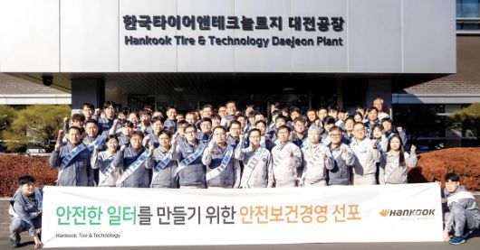 한국타이어앤테크놀로지가 20일 오후 대전시 대덕구 소재 한국타이어 대전공장에서 한국타이어 이준길 대전공장장, 한국노총 한국타이어앤테크놀로지노동조합, 임직원, 협력사 관계자 등 60여 명이 참석한 가운데 '안전보건경영 선포식'을 열었다고 밝혔다. [사진제공=한국타이어][대전=팍스경제TV] 한국타이어앤테크놀로지㈜(이하 한국타이어)가 어제(20일) 오후 대전시 대덕구 소재 한국타이어 대전공장에서 한국타이어 이준길 대전공장장, 한국노총 한국타이어앤테크놀로지노동조합, 임직원, 협력사 관계자 등 60여 명이 참석한 가운데 '안전보건경영 선포식'을 열었다고 오늘 밝혔습니다.
