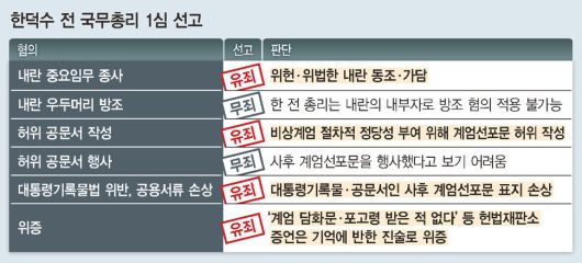 내란 중요임무 종사 등 혐의로 유죄가 선고된 한덕수 전 국무총리 1심 판결은 12·3 비상계엄 선포가 내란죄에 해당하는지를 우선 판단한 뒤 국정 2인자인 국무총리가 내란 행위에 가담했는지를 살펴보는 구조로 이뤄졌다. 법원은 12·3 비상계엄은 내란이라고 결론 낸 뒤, 한 전 총리가 국정의 2인자로서 윤석열 전 대통령이 주도한 내란에 적극 가담했다고 판단했다. 다음달 19일 ‘내란 우두머리’ 혐의로 기소된 윤 전 대통령 1심 선고를 앞두고 내란죄 수사의 적법성이 인정되고 ‘계엄은 내란’이라는 사법적 판단이 차곡차곡 쌓이는 모양새다.