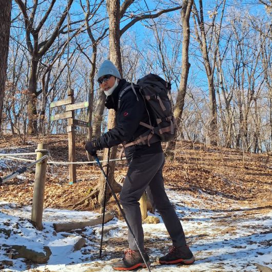 공개된 사진 속 이문세는 두툼한 블랙 아웃도어 점퍼에 비니와 선글라스를 착용하고, 배낭을 멘 채 스틱을 쥐고 눈 덮인 산길을 오르고 있다. 매서운 겨울바람에 대비해 마스크까지 꼼꼼하게 챙긴 모습이다.