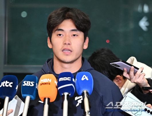 21일 오후 야구대표팀 선수들이 인천공항 제1터미널을 통해 귀국했다. 인터뷰하고 있는 박영현. 인천공항=송정헌 기자songs@sportschosun.com/2026.01.21/ |