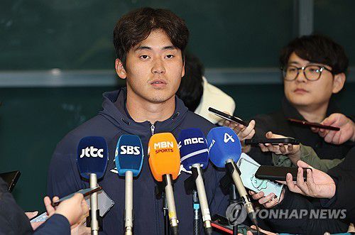 (영종도=연합뉴스) 김성민 기자 = 월드베이스볼클래식(WBC) 1차 캠프를 마친 한국 야구대표팀 박영현이 21일 인천국제공항 1터미널을 통해 귀국하며 인터뷰하고 있다. 2026.1.21