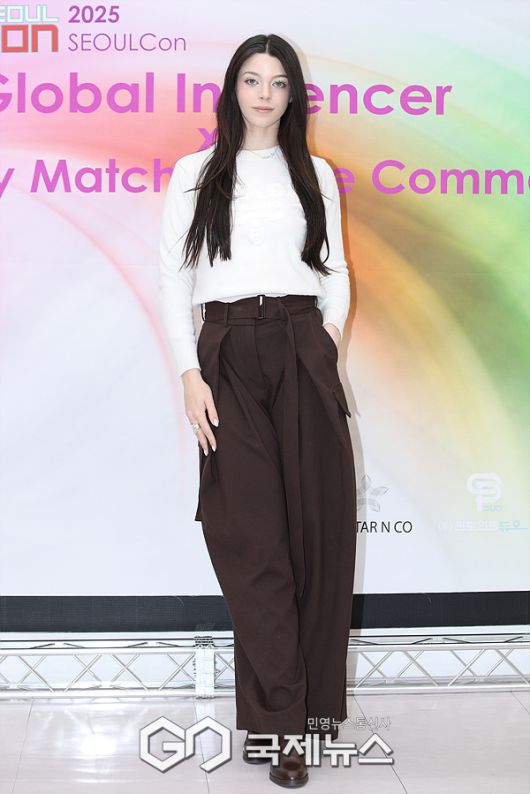(서울=국제뉴스) 이대웅 기자 = '2025 서울콘 글로벌 인플루언서 X 기업 매칭 라이브 커머스' 행사가 지난 30일 오후 서울 동대문디자인플라자(DDP) 패션몰 4층 V-커머스 스튜디오에서 열렸다. 이날 행사에 초청받은 스페인 인플루언서 나탈리아가 포토월에서 기념 포즈를 취하고 있다.
