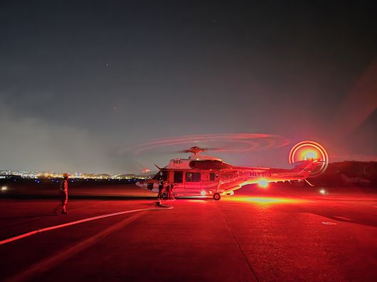전남 광양에서 발생한 산불 현장에 야간 비행이 가능한 수리온 헬기가 처음 투입돼 열화상 카메라로 화선을 파악하는 임무가 수행됐다.