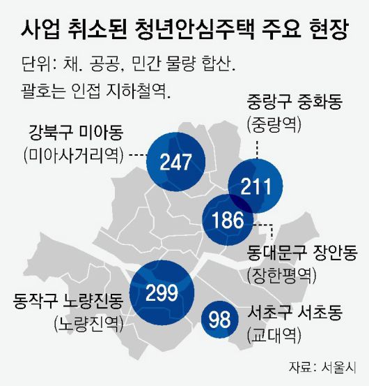 청년안심주택은 통학과 출근이 용이한 역세권 인근에 19∼39세 무주택자인 대학생, 청년, 신혼부부 등을 대상으로 최소 10년간 운영하는 임대주택을 말한다. 초기 임대료는 시세보다 5% 낮고 계약갱신요구권, 임대차 상한제를 적용받는다. 사업이 해제된 7곳 중 5곳은 사업자가 자발적으로 사업을 취소했다. 나머지 2곳은 인허가를 받은 후 5년 동안 착공하지 않아 국토계획법에 따라 자동 해제됐다.