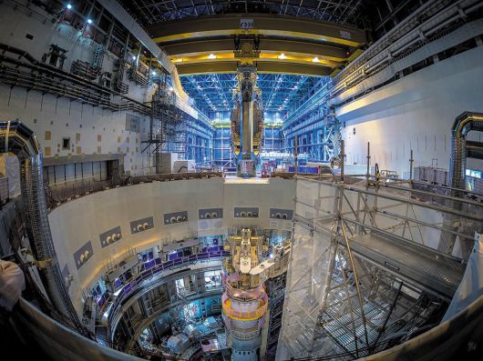 인류 최대 핵융합 실험 장치인 국제핵융합실험로(ITER) 조립 현장. 진공 용기를 구성하는 모듈이 설치되는 장면이다. /ITER |