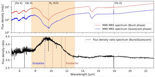 연구팀은 EC 53의 휴지기와 폭발기 관측을 각각 진행, 폭발 단계에서만 결정질 광물 스펙트럼이 검출되는 것을 확인했다.
