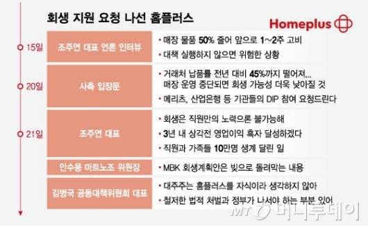 회생 지원 요청 나선 홈플러스/그래픽=임종철 |