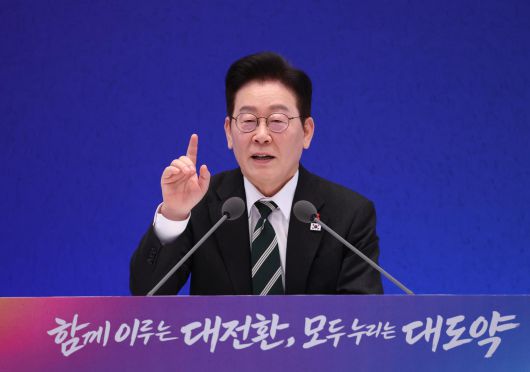 이재명 대통령이 21일 청와대 영빈관에서 2026 신년 기자회견 ‘함께 이루는 대전환, 모두 누리는 대도약’에서 언론의 질문에 답하고 있다. 2026.01.21 청와대사진기자단 |