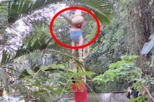 태국 왓파랏 사찰에서 노출이 심한 옷을 입은 관광객이 아크로 요가를 하고 있다. 사우스차이나모닝포스트(SCMP) 캡처
