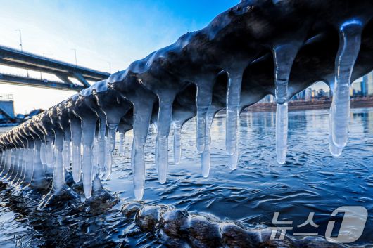한파주의보가 발효된 20일 서울 광진구 인근 한강에 고드름이 얼어있다. 2026.1.20/뉴스1 ⓒ News1 이호윤 기자 |