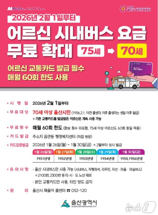 울산시 어르신 시내버스 요금 무료 정책 확대 시행 홍보 웹 포스터. (울산시 제공. 재판매 및 DB 금지) /뉴스1 |