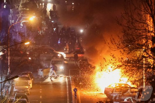 이란 테헤란 반정부 시위. 로이터통신이 제3자로부터 제공받은 사진. 2026.01.08 ⓒ 로이터=뉴스1 ⓒ News1 이지예 객원기자 |