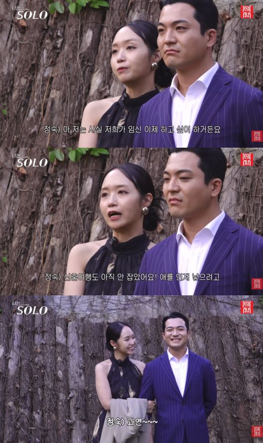 정숙은 "사실 저희가 임신하고 싶은 상황이다. 아이도 빨리 낳고 싶어서 신혼여행을 아직 안 잡았다. 아이를 먼저 낳으려고 한다"고 밝혔다.