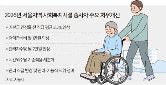 서울시가 사회복지시설 종사자 임금을 전년 대비 평균 3.5% 인상하는 등 처우개선에 나선다. 4·5급, 관리·기능직 중 8호봉 이하 저연차 종사자 기본급은 올해도 전국 최고 수준(복지부 권고안 대비 평균 107.0%)을 유지한다는 방침이다.