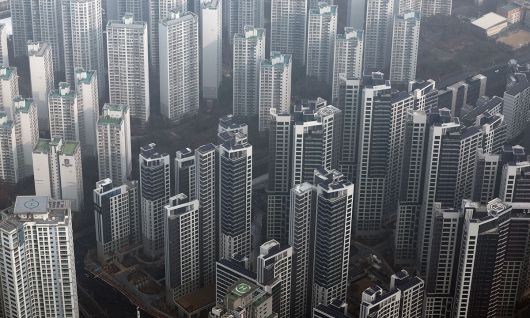 서울 송파구 롯데월드타워에서 바라본 한강변 아파트 단지. 연합뉴스 |