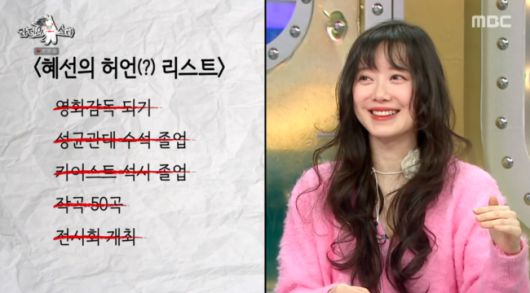 무엇보다 구혜선은 “저를 싫어하시는 분들이 ‘작곡을 50곡한다’, ‘전시회 할 거다’, 이런 리스트를 만들어서 안 좋게 소문을 냈다. 근데 매해 리스트가 줄었다. 그게 이제 돌지 않게 됐다. 영화도 처음엔 단편 영화였는데 단편 영화 5개, 장편 영화 3개다”라며 뿌듯해했다.