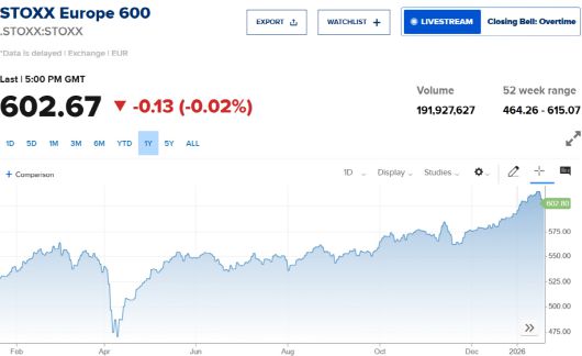 유럽증시는 21일(현지시간) 트럼프 대통령이 스위스 다보스에서 열린 세계경제포럼(WEF·다보스포럼)에서 연설한 이후 보합세로 마감했다.