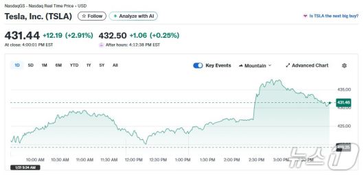 일단 테슬라는 2.91% 급등한 431.44달러를 기록했다.
