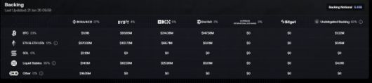 이날 에테나 공식 홈페이지에 따르면 USDE의 담보자산은 비트코인(BTC) 23%, 이더리움(ETH)과 이더리움 리스테이킹(ETH LSTs) 12%, 스테이블코인 65%로 구성돼 있다.
