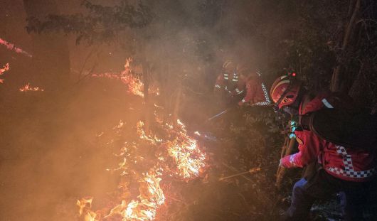 21일 부산 기장군 산불 현장에서 산림청 산불특수진화대가 밤샘 진화작업을 펼치고 있다. 산림청 제공 |