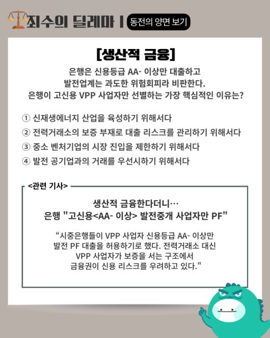 ▶ 기사 바로가기: 생산적 금융한다더니···은행 “고신용 발전중개 사업자만 PF”