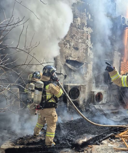 [청양=뉴시스] 청양군 청양읍 읍내리 휴게음식점 화재 현장. (사진= 청양소방서 제공) *재판매 및 DB 금지 |