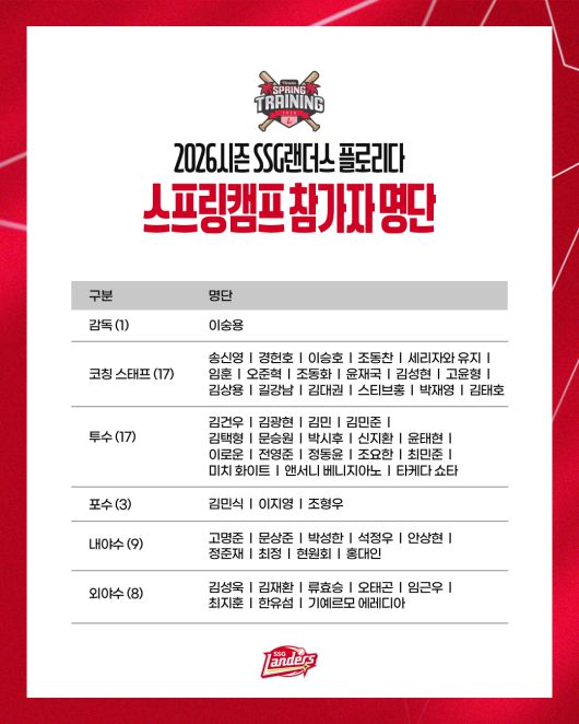 스프링캠프엔 이숭용 감독을 비롯한 18명의 코칭스태프와 투수 17명, 포수 3명, 내야수 9명, 외야수 8명을 포함한 선수단 37명이 합류해 총 55명이 미국 플로리다 베로비치 스프링캠프에 참가한다.