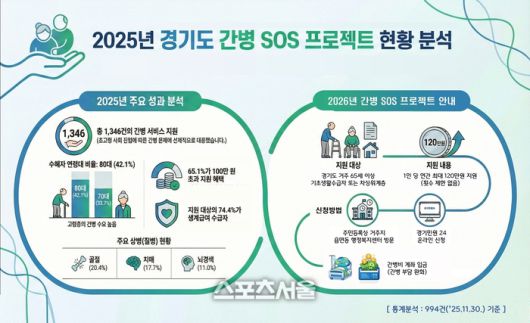 박미정 노인복지과장은 “간병 SOS 프로젝트는 단순한 비용 지원을 넘어 가족 간병으로 인한 경제적·신체적·정신적 부담을 완화하는 정책”이라며 “경기복지재단 연구 결과를 토대로 계속해서 더 많은 도민이 체감할 수 있도록 시군과 협의를 하겠다”고 말했다.