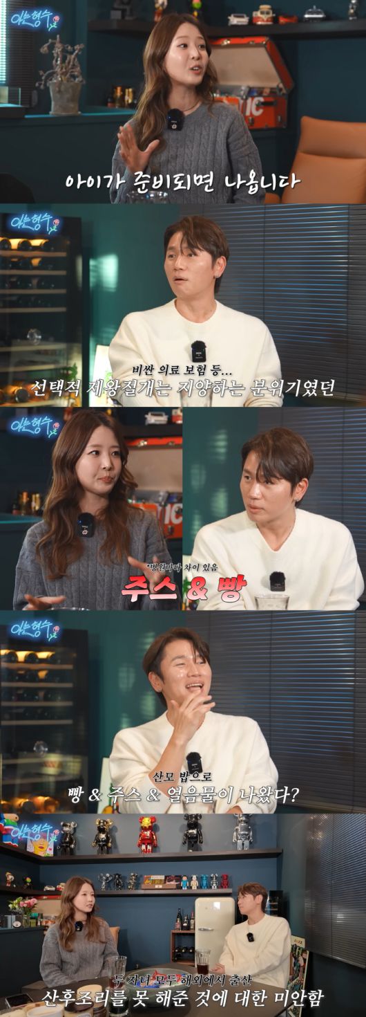 이어 "미국에서는 아이를 낳으면 주스랑 빵이 나온다. 시원하게 한 잔 마시라고 얼음물도 준다"라고 덧붙여 놀라움을 안겼다. 케이윌도 "우리나라에서 만약에 산모 밥으로 빵, 주스, 얼음물이 나온다면 평생 얘기할 거리 아닌가"라며 깜짝 놀랐다.